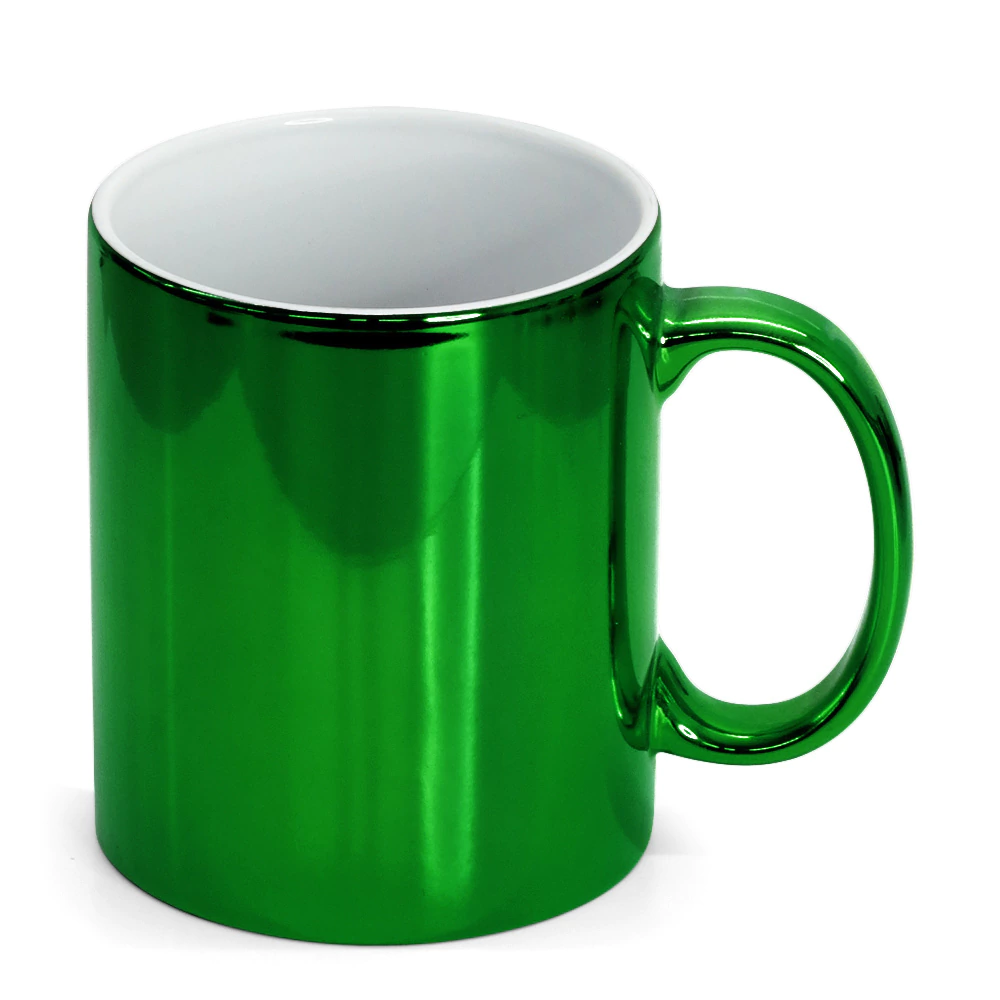 A Caneca Espelhada Verde 325ml é a escolha ideal para quem busca personalizações modernas, elegantes e com acabamento premium. Produzida em cerâmica de alta qualidade e revestida com efeito metalizado, oferece um brilho intenso que transforma qualquer arte em um destaque visual impressionante.