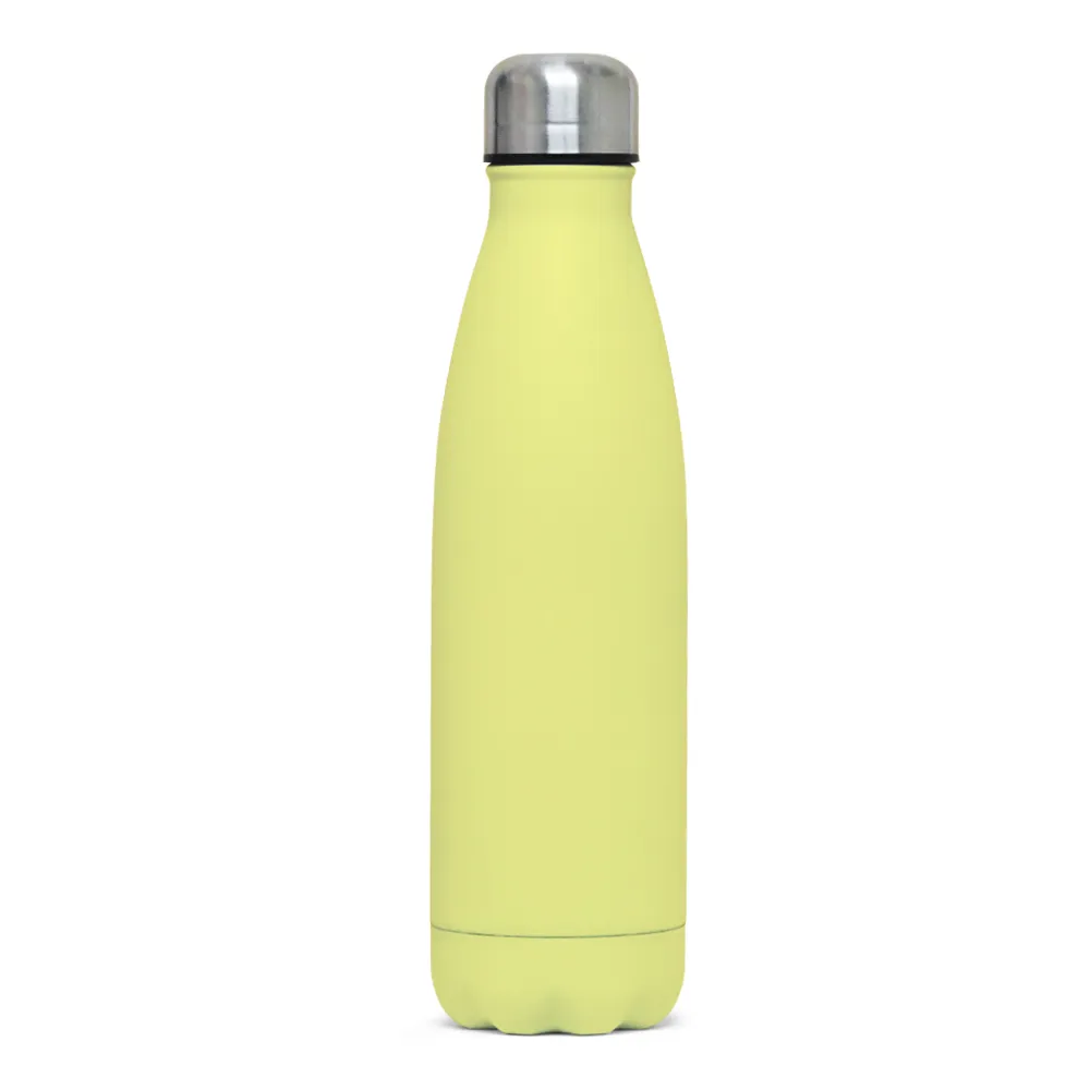 A Garrafa Cola Colorida Amarela Fosca é produzida em aço inoxidável com parede dupla, garantindo resistência, durabilidade e melhor conservação da temperatura do líquido. Seu acabamento fosco na cor amarela com tampa prata proporciona um design moderno e sofisticado, ideal para uso em academias, práticas esportivas ou como opção de brinde e presente personalizado.